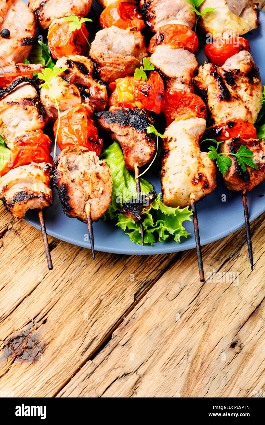 African Style Cuisine Pork And Beef Shish Kebabs