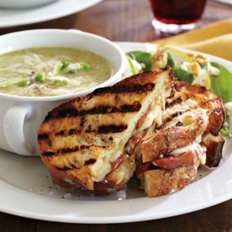 Simple Broccoli And Cheddar Soup With Warm Ham Cheese Sammies
